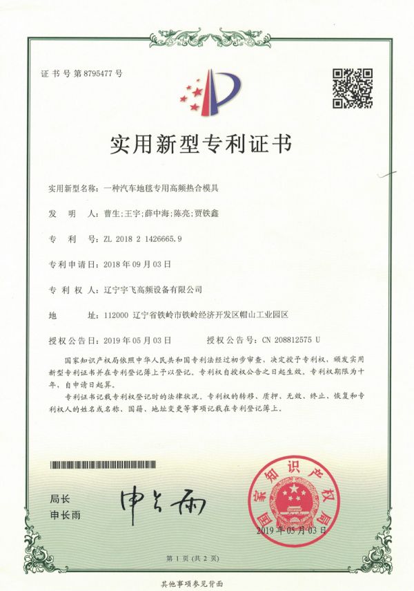汽車地毯專用高頻熱合模具實(shí)用新型專利