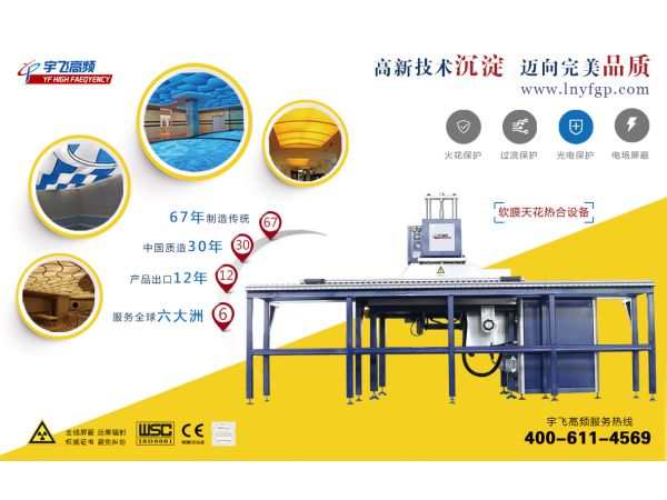 宇飛膜材料專用高周波焊接機,專業(yè)用于建筑棚膜、快速門、氣艇及PVC/TPU等材料的熔接熱合。